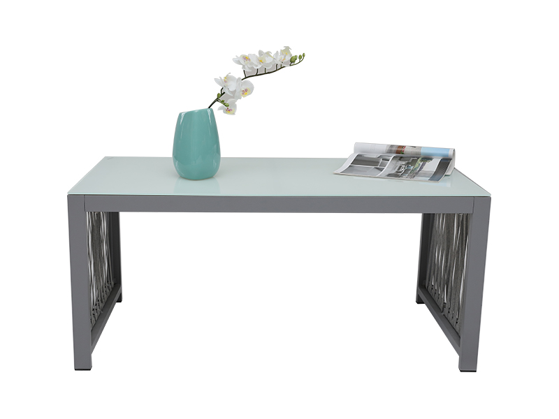 | Pagtukoy | Ang frame ng aluminyo na may lubid na weaved, 4pcs sa kabuuan; loveseat: L70*W132*H69cm, 1pc Single Chair: L70*W70*H69cm, 2pcs Table ng Kape: L100*W50*H46cm, 5mm Tempered White Glass, 1pc |
