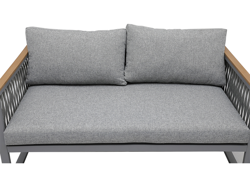 We have two our own factory. So we can offer the price and Custom KD Design Garden Outdoor Furniture Woven Rope Strap Sofa Set With Seat Cushion, Synthetic Wood sa Armrest YQC-2786 directly.